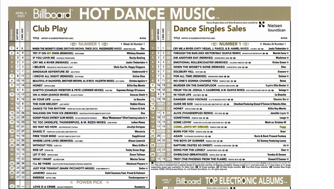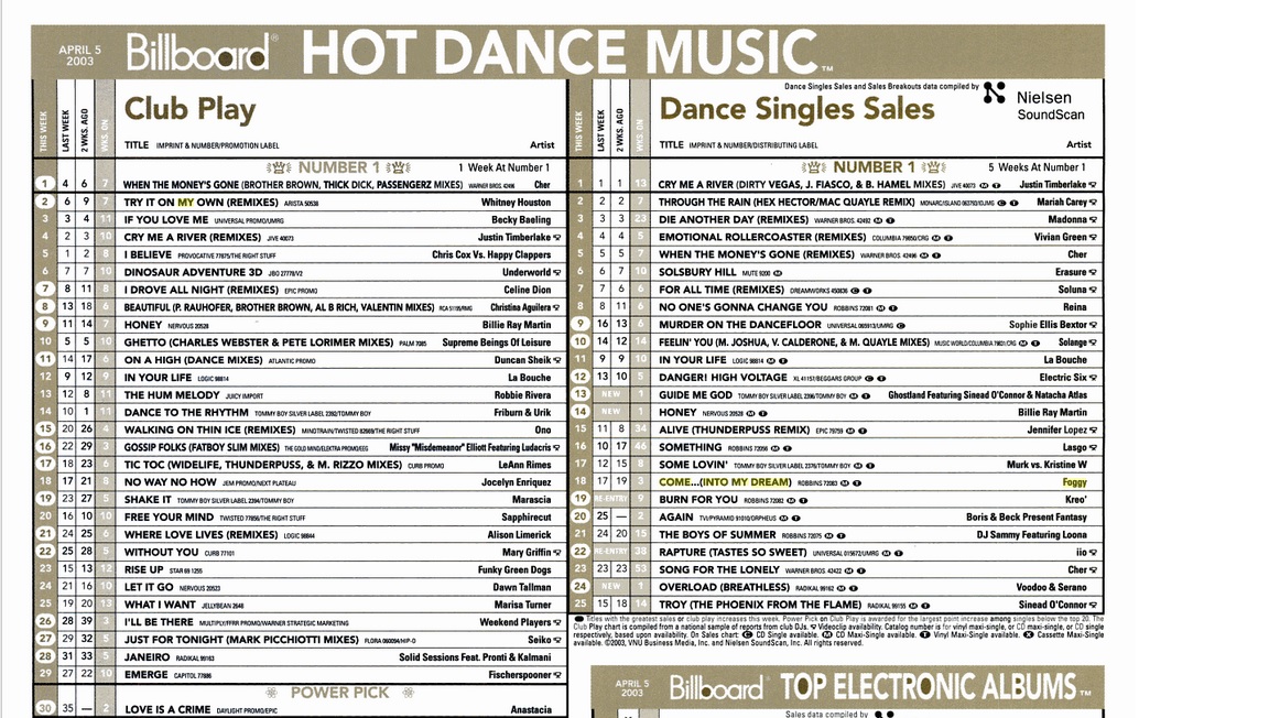 Come into my Dream seit 3 Wochen in den USA Billboard Dance Single Sales Charts vertreten